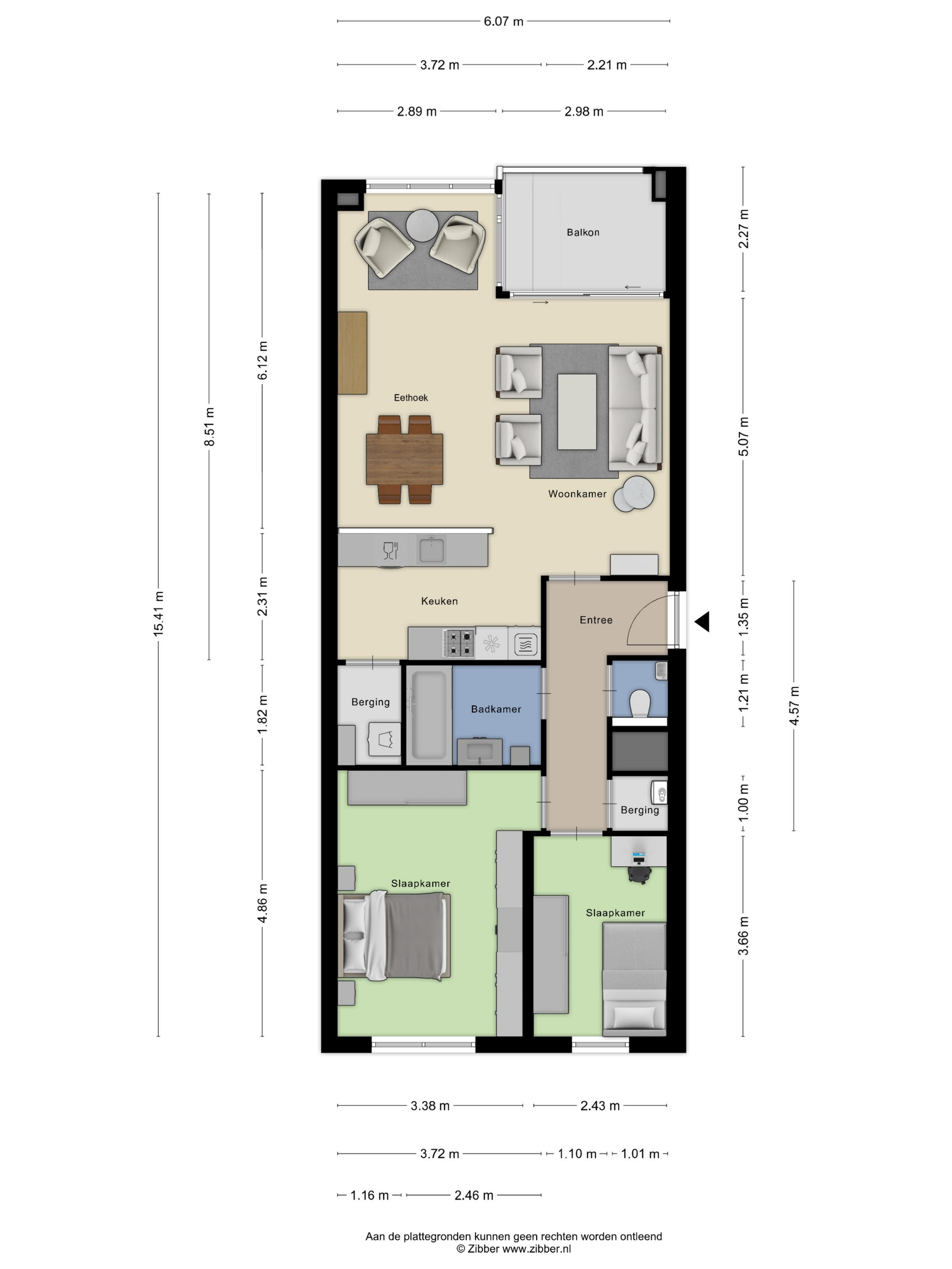Het appartement beschikt over een praktische en efficiënte indeling, waarbij wonen en slapen duidelijk van elkaar zijn gescheiden. Dit zorgt voor rust, comfort en een prettige leefbaarheid.